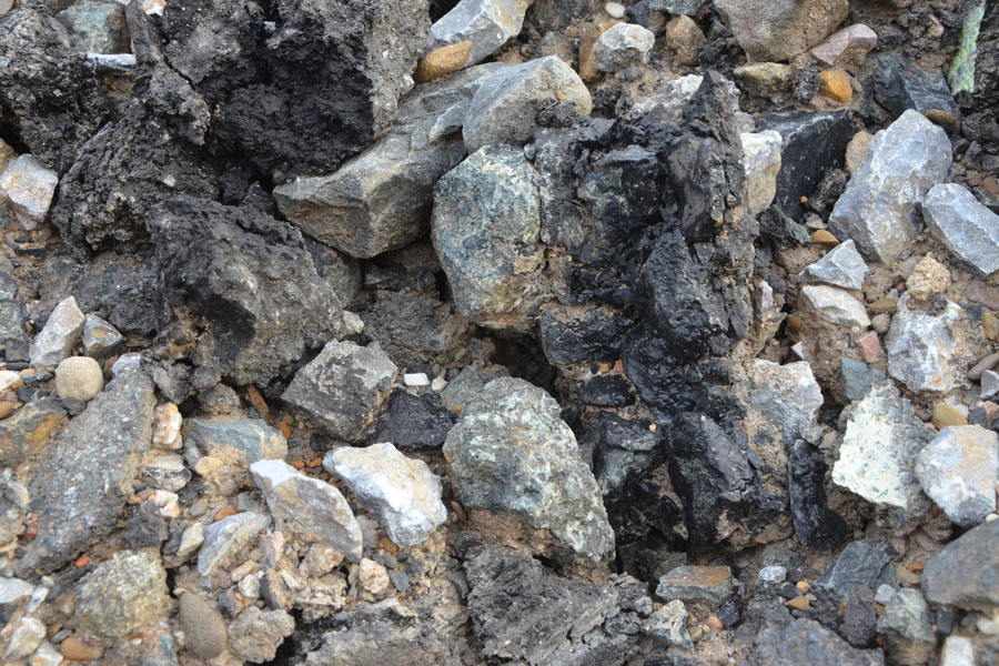 Asphalt oder Straßenaufbruch fällt je nach Art der Baumaßnahme als Fräsgut oder grobstückig als " Scholle " an. Der teerfreie Asphalt wurde mit Bitumen auf Erdölbasis als Bindemittel hergestellt und gilt als unschädlich. Dieses ist anhand einer speziellen Analytik nachzuweisen, damit der Abfall wiederverwertet werden kann. Er findet nach der Behandlung in einem Mischwerk seinen Einsatz in der Produktion von Asphalt oder kann als Straßenunterbaumaterial verwandt werden.